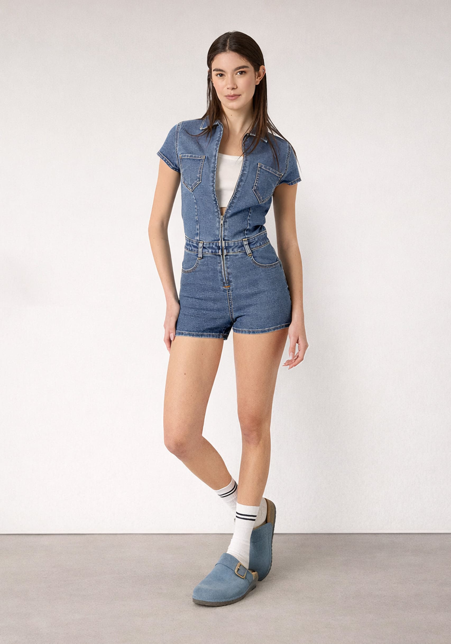 Tuta intera in denim corta