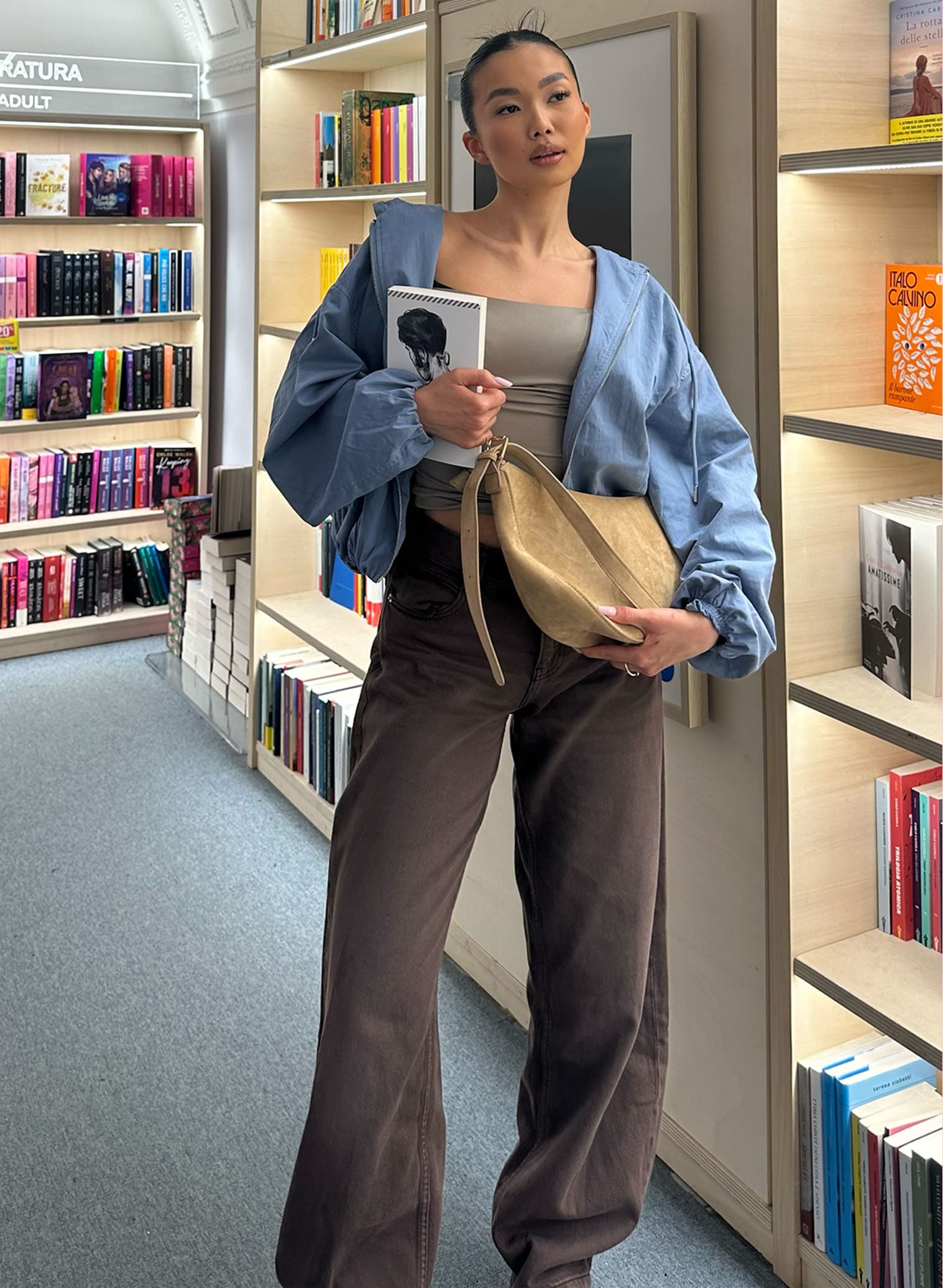 Borsa a tracolla con fibbia effetto suede