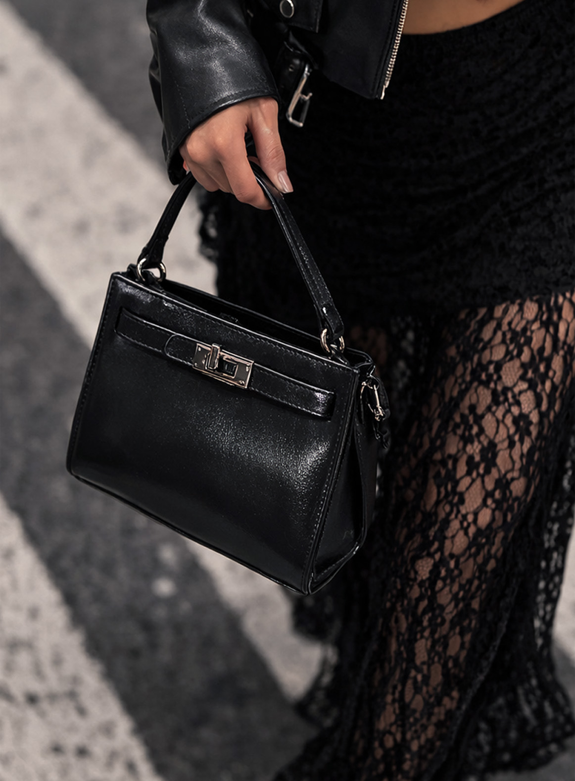 Borsa effetto pelle con tracolla