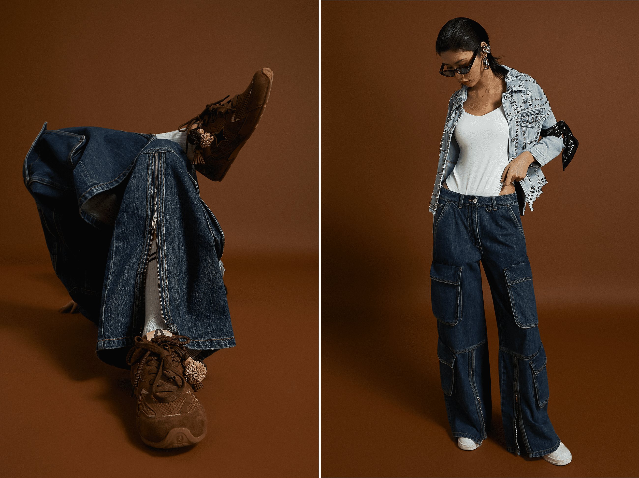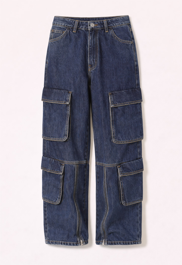 Jeans cargo con dettagli zip