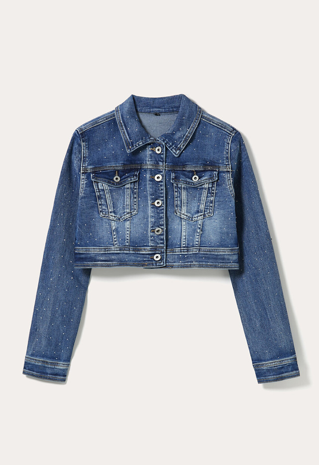Giubbotto cropped in denim