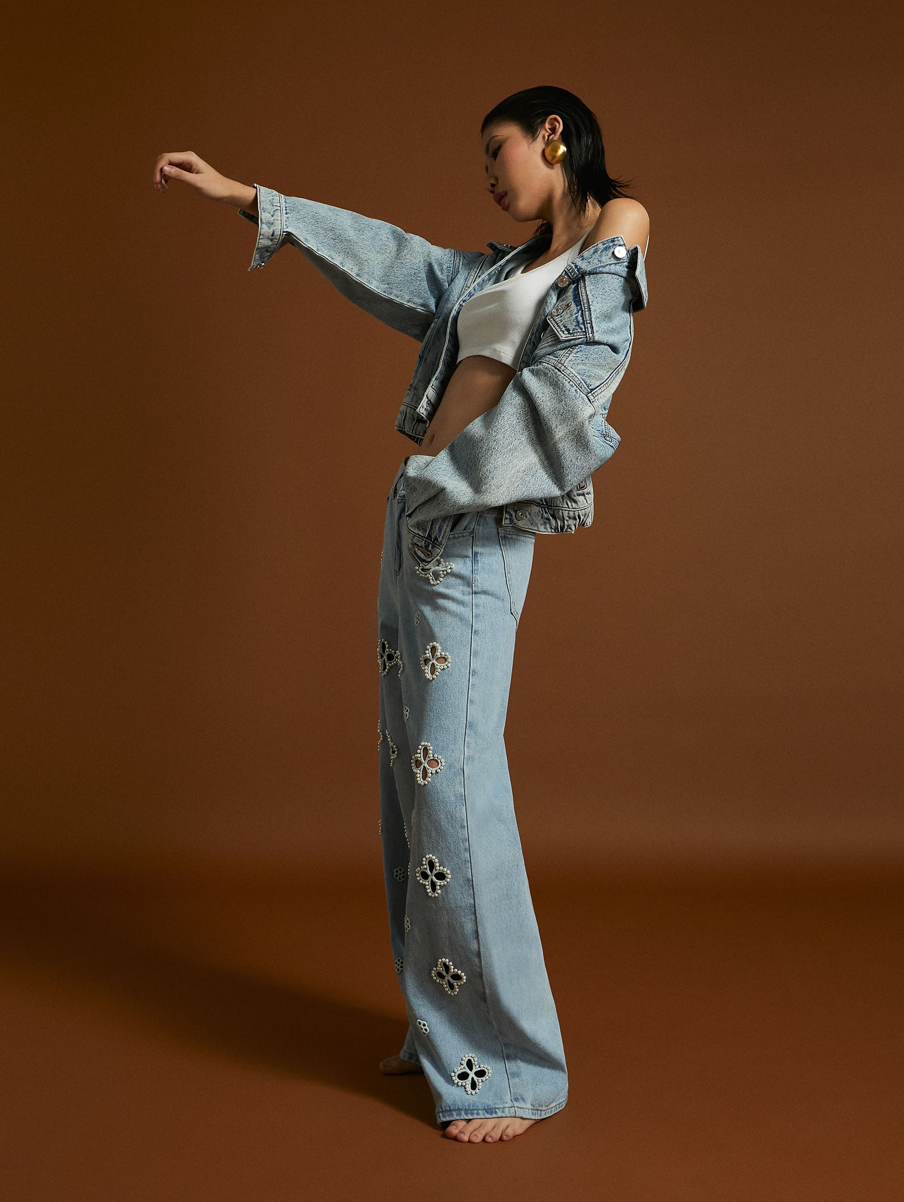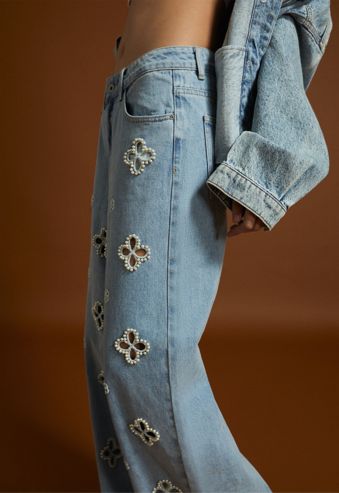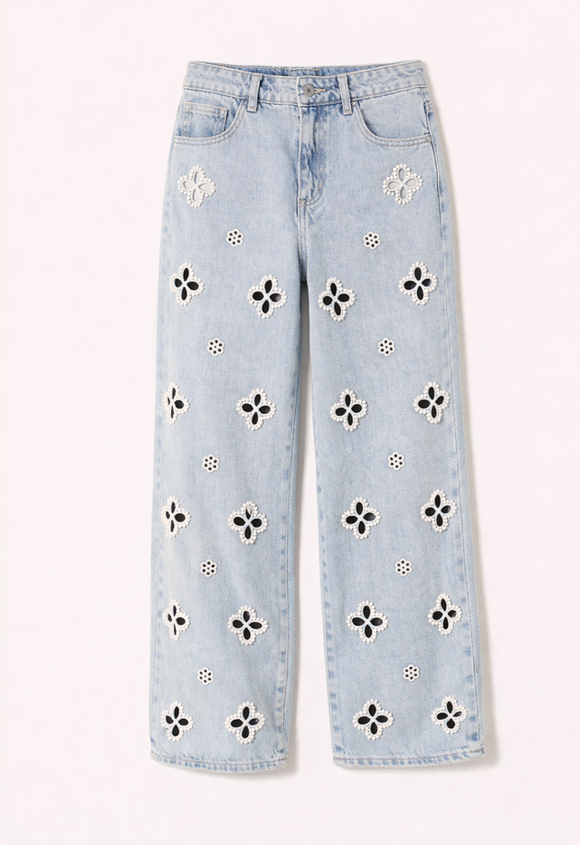 Jeans wide leg con perline