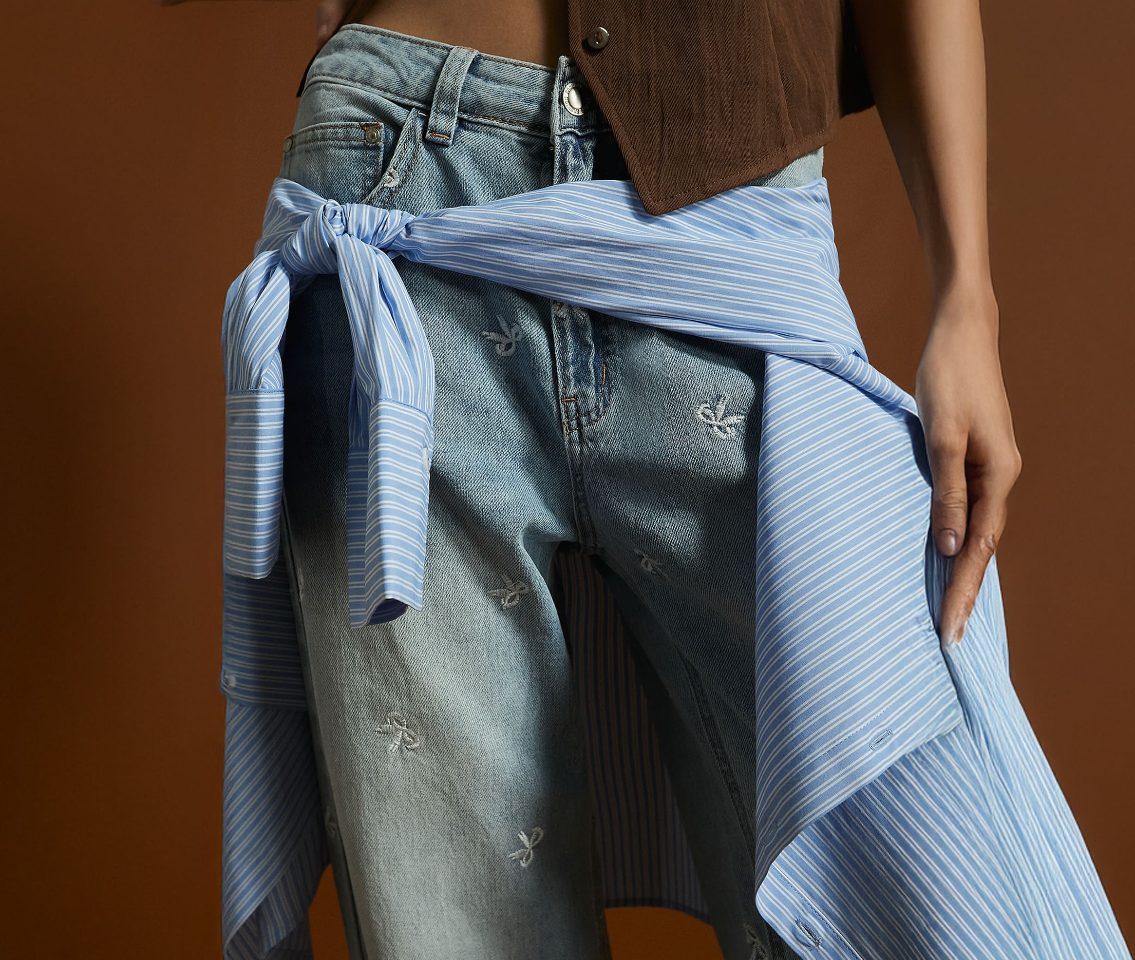Jeans straight fit con fiocchi ricamati