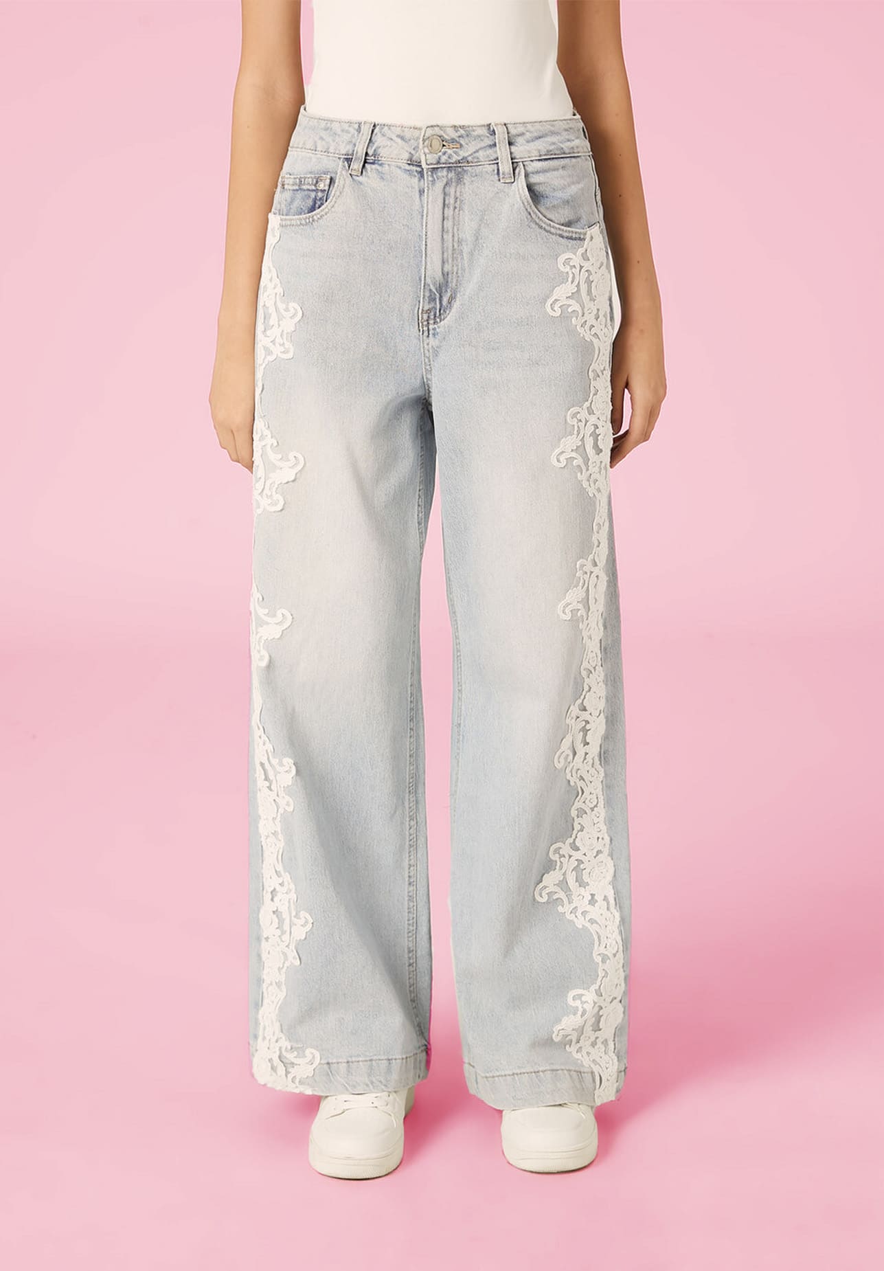 Jeans wide leg con ricami
