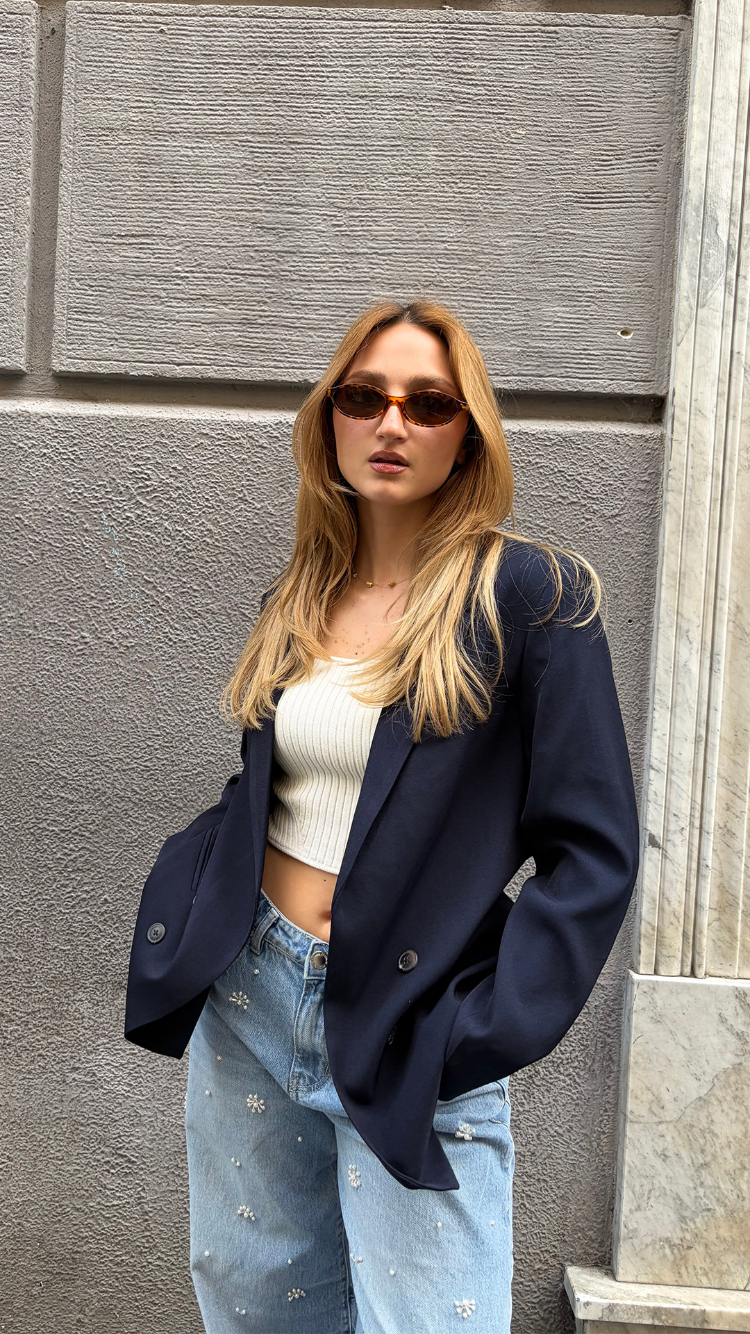 Jeans balloon fit con perline